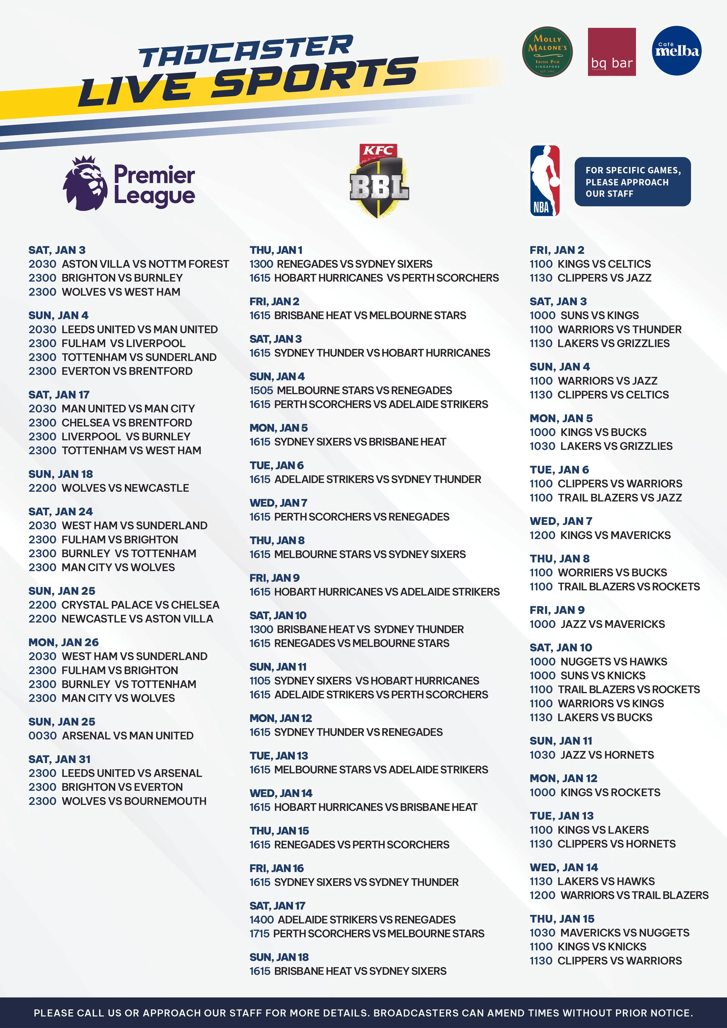 LIVE SPORTS AT BQ BAR
